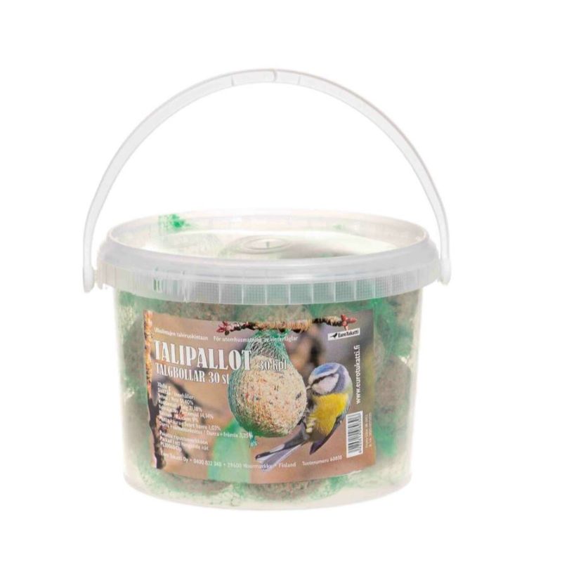 30 kpl talipalloja kätevässä läpinäkyvässä ja kannellisessa muoviämpärissä. - talipallot tarjoavat linnuille runsaasti energiaa kylmien talviolosuhteiden aikaan. - talipallot on pakattu... Lue lisää