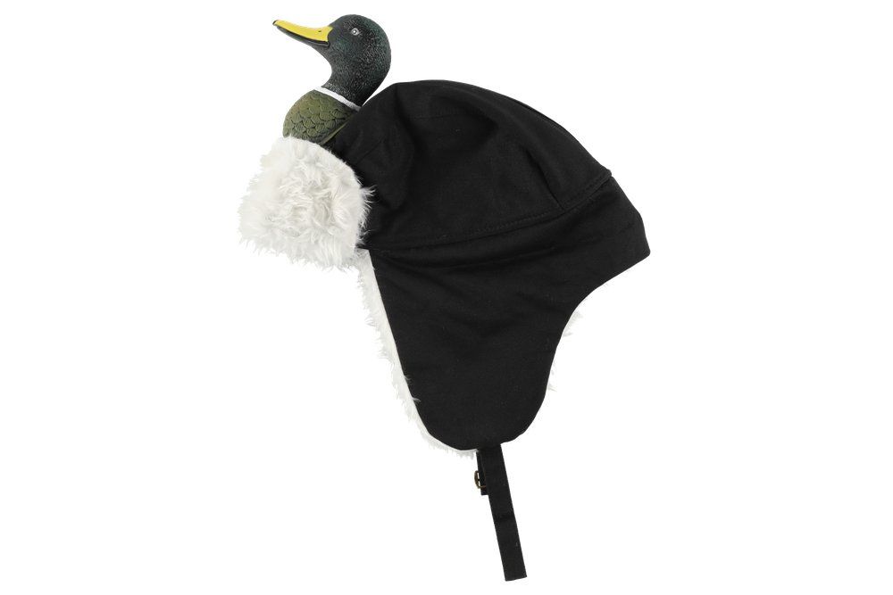 musta "karvalakki" muovisella sorsakoristeella - one sixe, ympärysmitta 56-58 cm - eläinhahmo on kiinnitetty kestävällä ompeleella - väri: musta, valkoinen vuori
