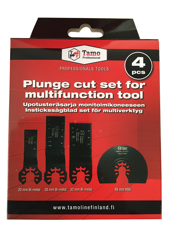 Korkealaatuinen Tamo Profesional -tuote - 4-osainen upotusteräsarja monitoimikoneeseen - sis. 22 mm bi-metalliterän (kuvasta poiketen), 28 mm bi-metalliterän, 32 mm bi-metalliterän ja 88 mm... Lue lisää
