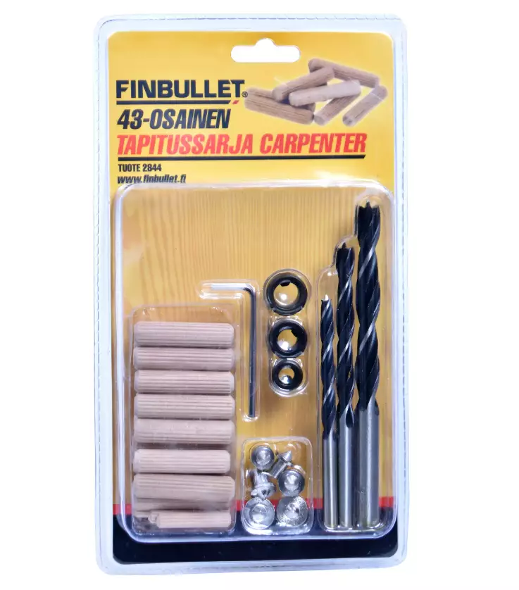 Tapitussarja kaikkeen tarpeelliseen puun tapitukseen. Sarjassa on: • 10 x 6 mm puutappi • 10 x 8 mm puutappi • 10 x 10 mm puutappi • 2 x 6 mm merkkaustappi • 2 x 8 mm merkkaustapp • 2 x 10... Lue lisää