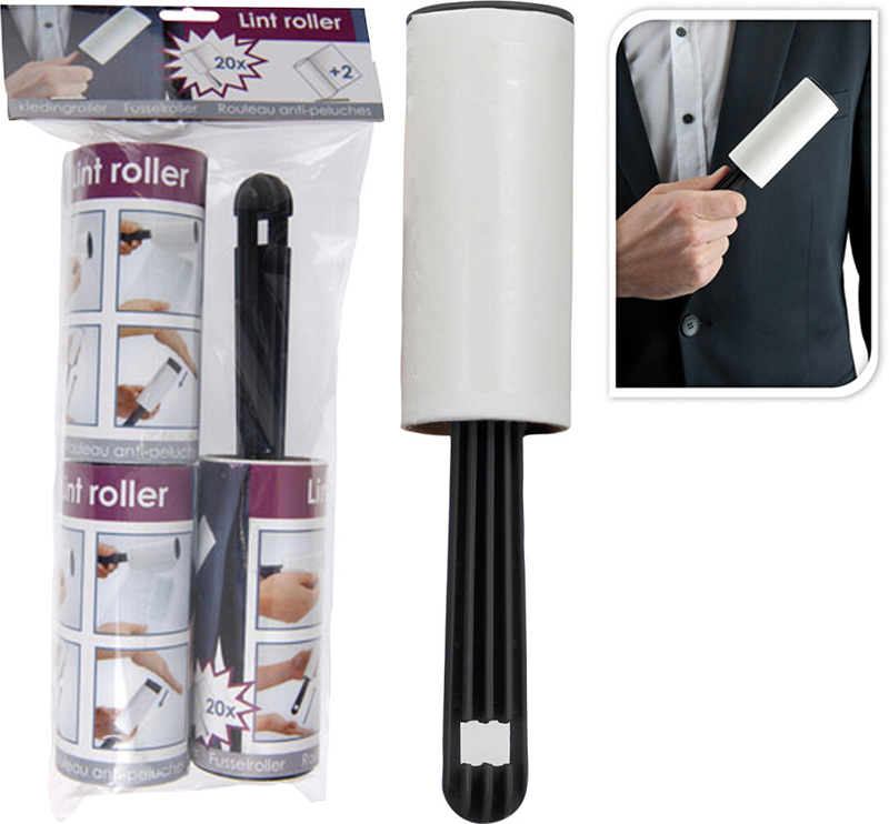 pakkauksessa varsi ja 3 vaihdettava teippirullaa - tekstiilien siistimiseen