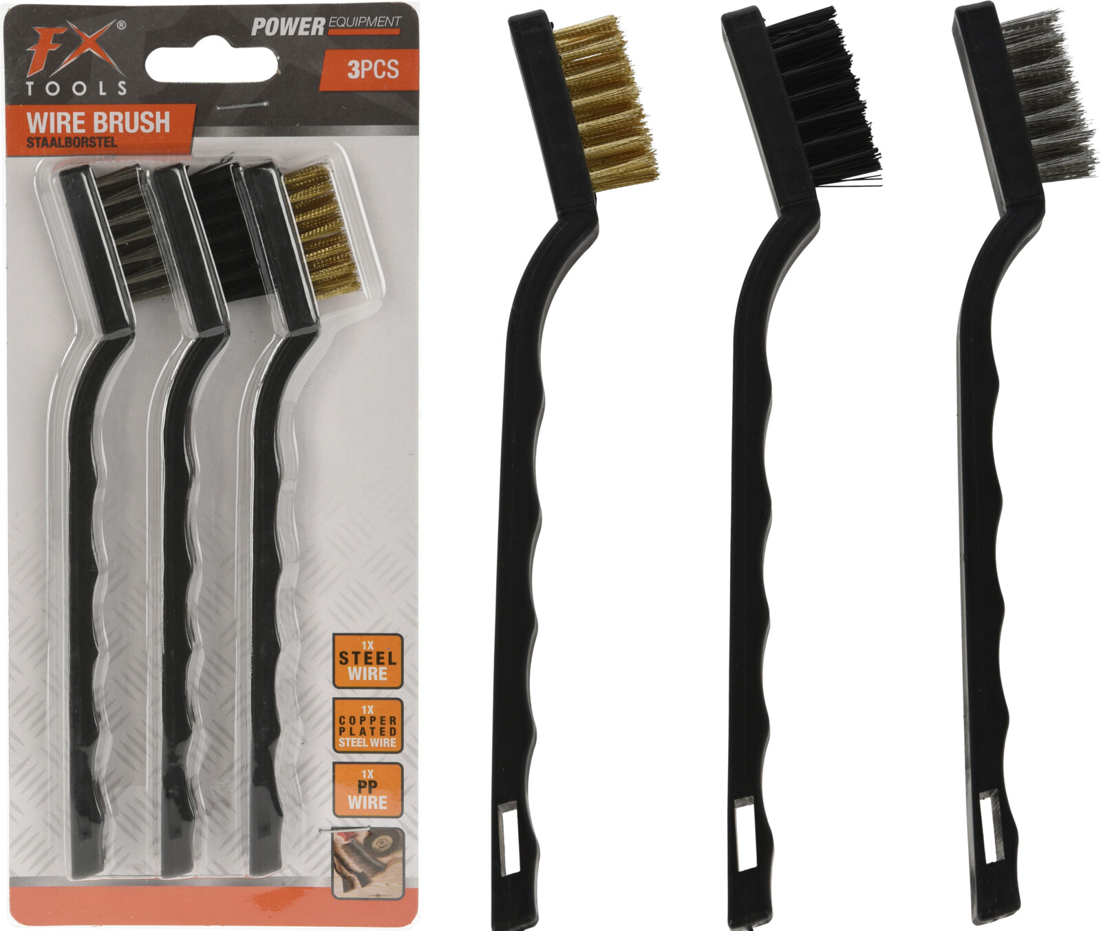 setissä 3 eri materiaalia olevaa teräsharjaa - pituus 17 cm