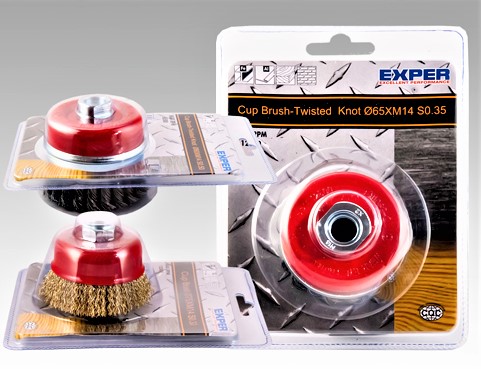 Teräskuppiharja porakoneisiin ja kulmahiomakoneisiin - kara M14 - palmikoitu teräslanka Ø 0,30 mm - kierrokset max 12500 k/min