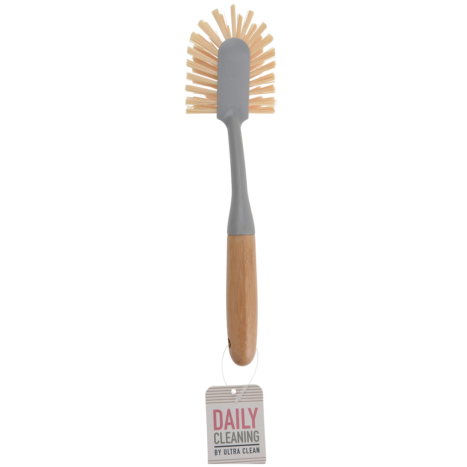 harmaa muovinen tiskiharja mukavalla bambupuisella kahvalla