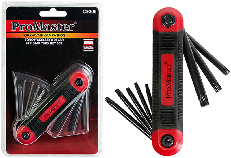 Kromivanadiumteräksestä valmistetut torx-avaimet. Torx-avainkammassa on käteensopiva grip-kahva. Avaimilla on vuoden takuu.