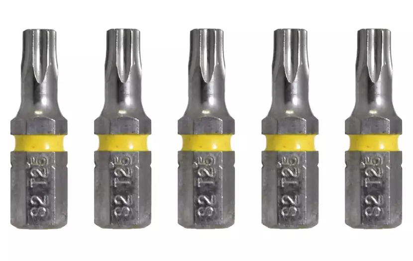 Torx kärkisarja 5kpl 1/4" T25 x 25 mm Torx: T25 Kara: 1/4" Kärjen pituus: 25 mm Materiaali: S2 työkaluteräs.