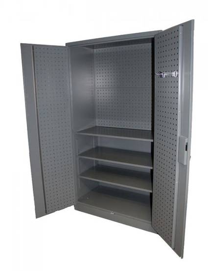 Leveys 1000 mm Syvyys 560 mm Korkeus 1850 mm Metalli / pelti 0,75 mm Takaseinä ja ovet reikälevytetty ? oven max.kantavuus 40 kg ? hyllyn max.kantavuus 40 kg 3 hyllytasoa 3-pistelukitus... Lue lisää