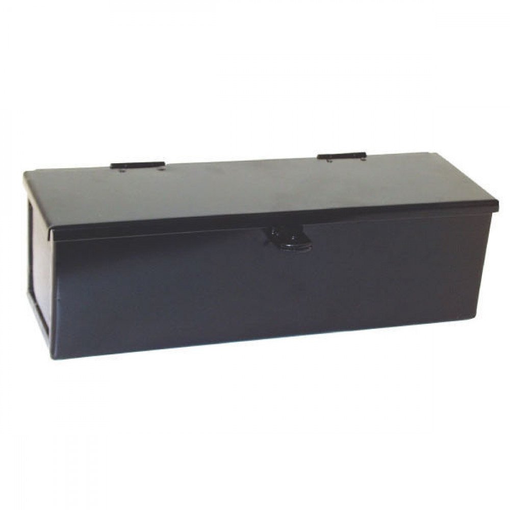 Teräksinen musta työkalulaatikko esim. työkoneen hyttiin. Lukittavissa riippulukolla. Valittavana kaksi eri kokoa.