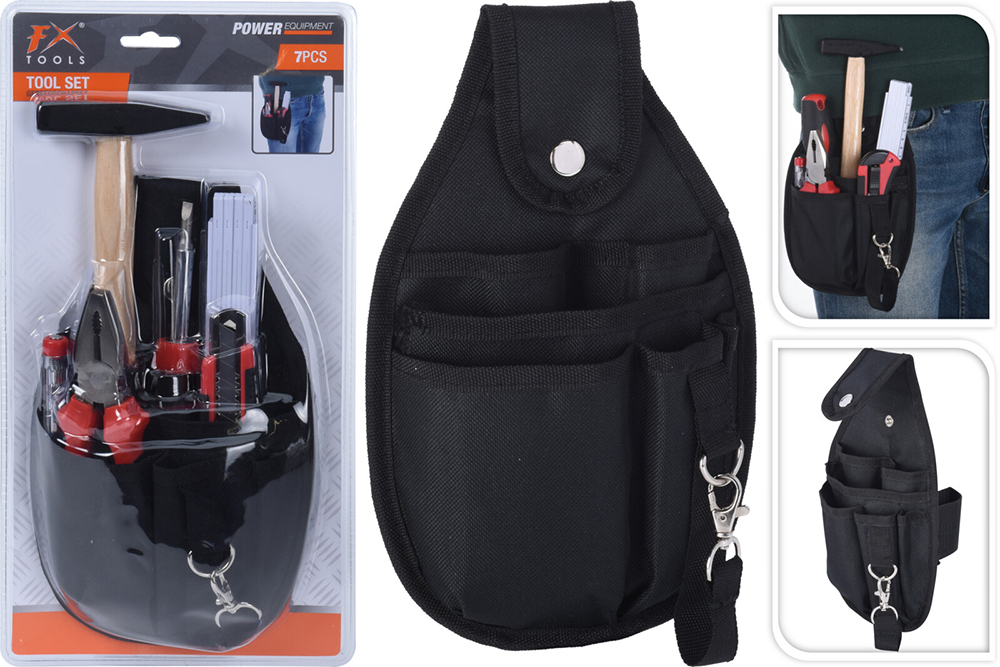 kätevä vyöhön ripustettava kotelo työkaluille ja tarvikkeille - nepparikiinnitys - materiaali: nylon - mukana perustyökalut: vasara, taittomitta, pihdit, mattopuukko ja 2 meisseliä... Lue lisää