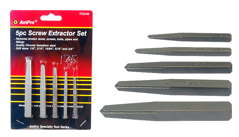 Kromivanadiumteräksestä valmistettu sarja ikuisella materiaalitakuulla rikkinäisten pulttien, muttereiden, ruuvien ja heloituksien irrottamiseen. - sisältää koot: 1/8", 3/16", 15/64", 5/16" ja... Lue lisää