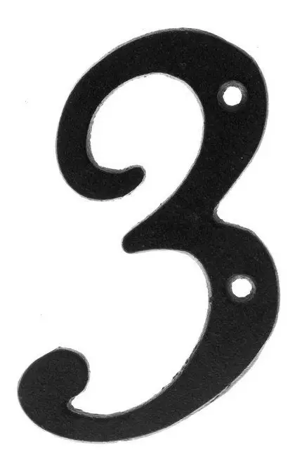 Musta valurautainen numero kahdella kiinnitysreiällä. Sopii esimerkiksi talonumeroksi. Korkeus 11 cm.
