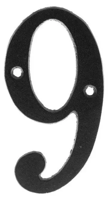 Musta valurautainen numero kahdella kiinnitysreiällä. Sopii esimerkiksi talonumeroksi. Korkeus 11 cm.