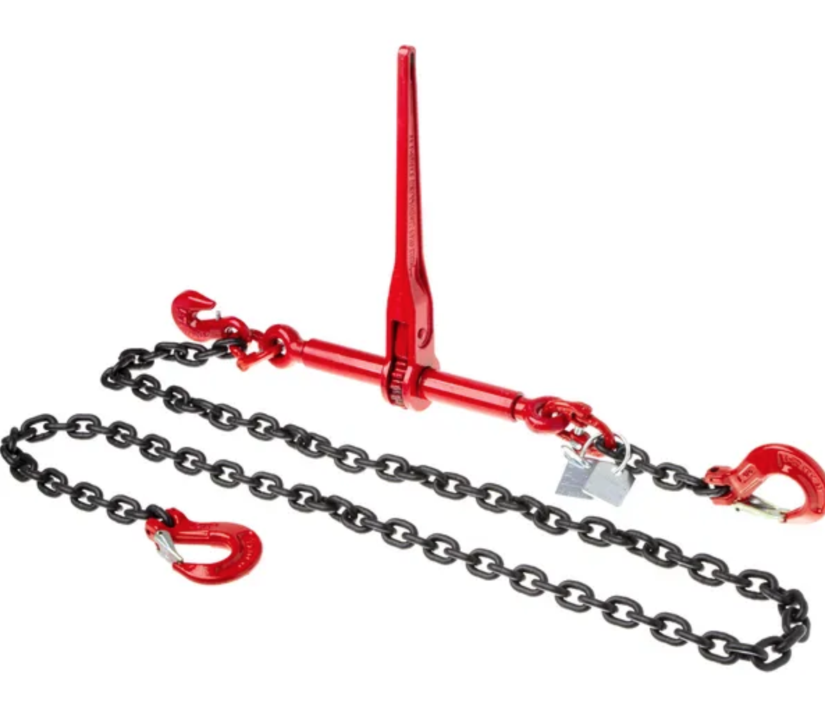 Vanttikiristin kiinteällä ketjulla ja lyhennyskoukuilla traktoreiden ja maarakennuskoneiden kuljetukseen.