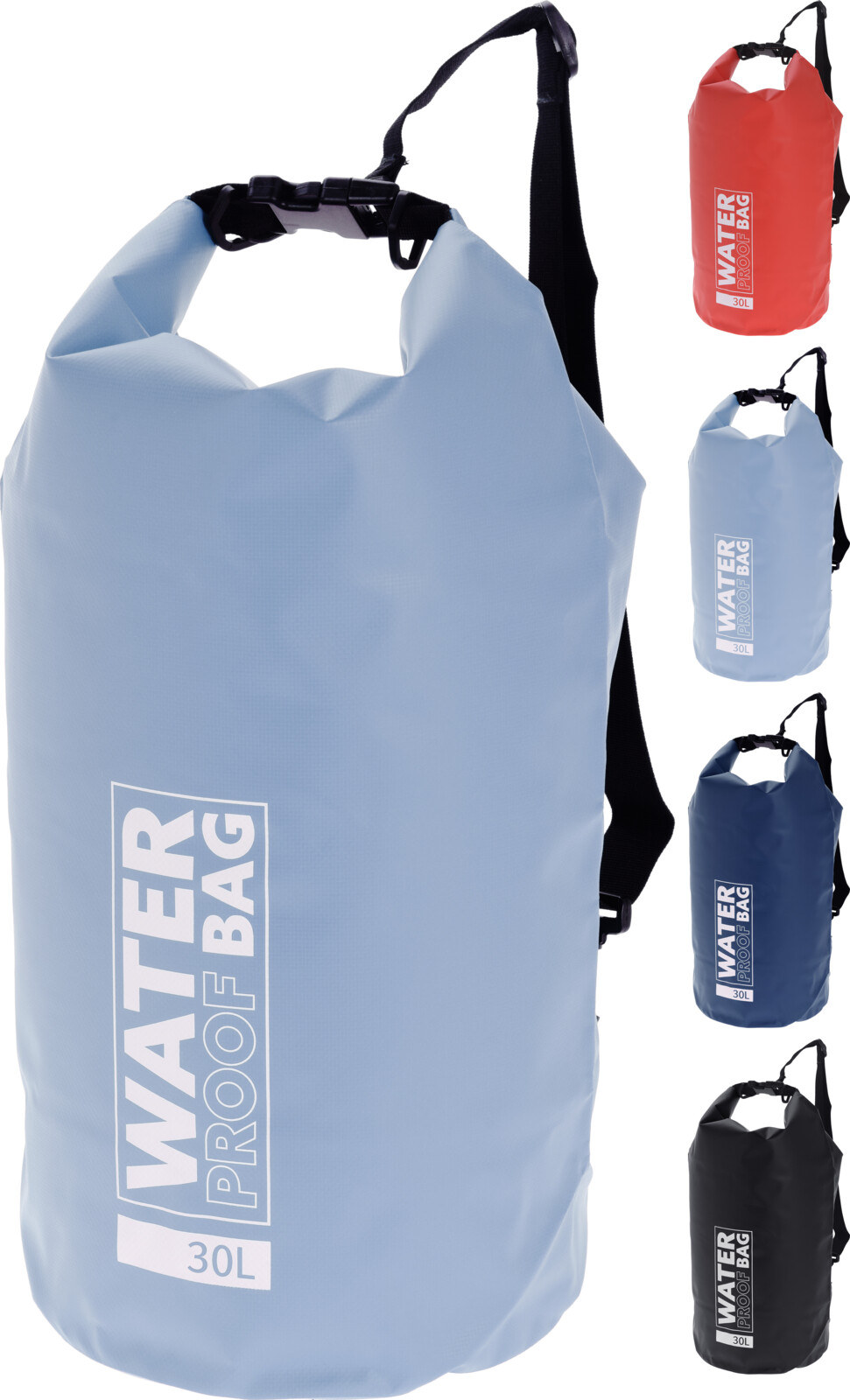 Vesitiivis laukku - vahva materiaali - tilavuus 30 litraa - suljetaan kiertämällä 3-5 kertaa ja kiinnitetään pikalukolla - pikalukon molemmin puolin D-lenkki - lajitelmatuote, väri ei... Lue lisää