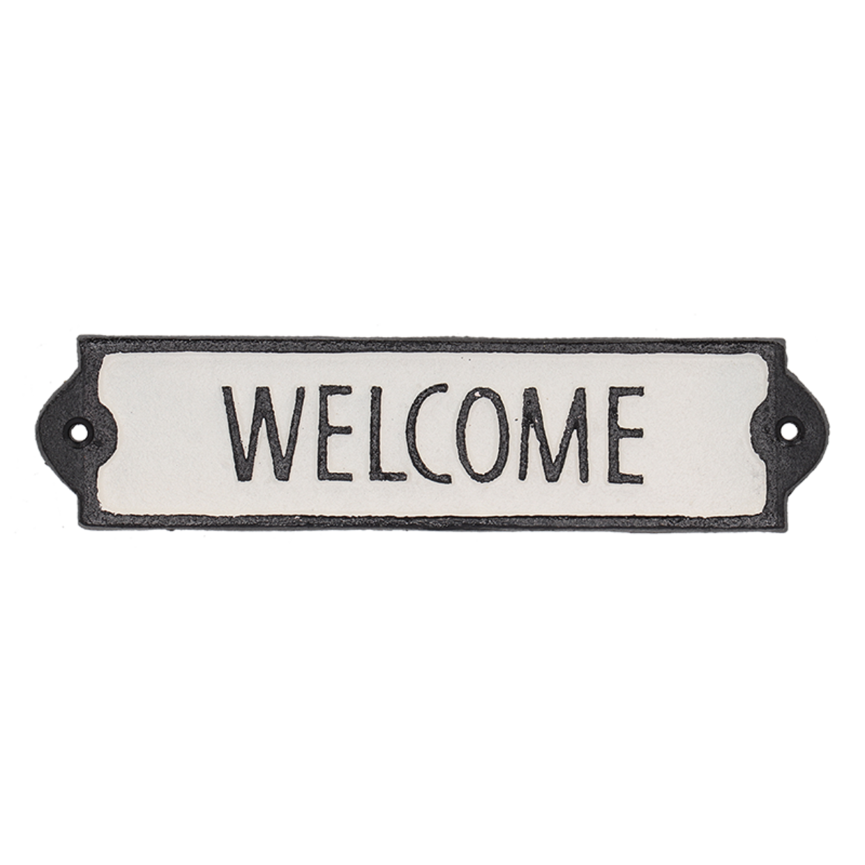 valurautainen kyltti Welcome -tekstillä - paino noin 400 g - mitat: 21.2 x 5.1 cm - paksuus noin 0,8 cm - kiinnitysruuvit ei sis.