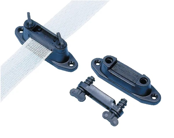 Tukevarakenteinen eristin kulmiin, joissa aitanauha vaihtaa suuntaa. Eristimen kumi on hammastettu nauhan liikkumisen estämiseksi. - 6 kpl/pkt